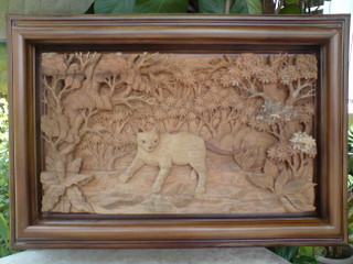 チークは世界的に有名な銘木で、レリーフ、彫刻となった後も木材自体が持っている独特の樹脂成分により、色合いが美しく変化する特徴があります。